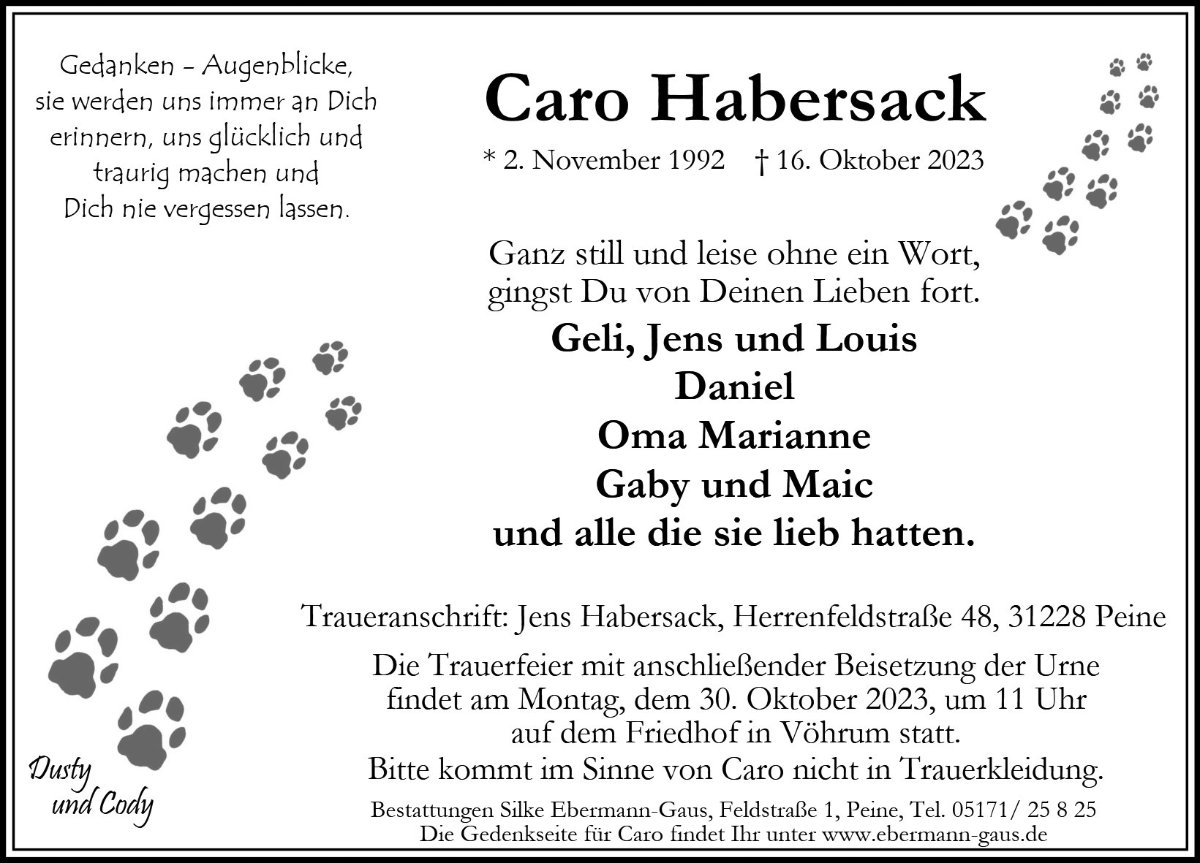 Caro Habersackgestorben am 16. Oktober 2023