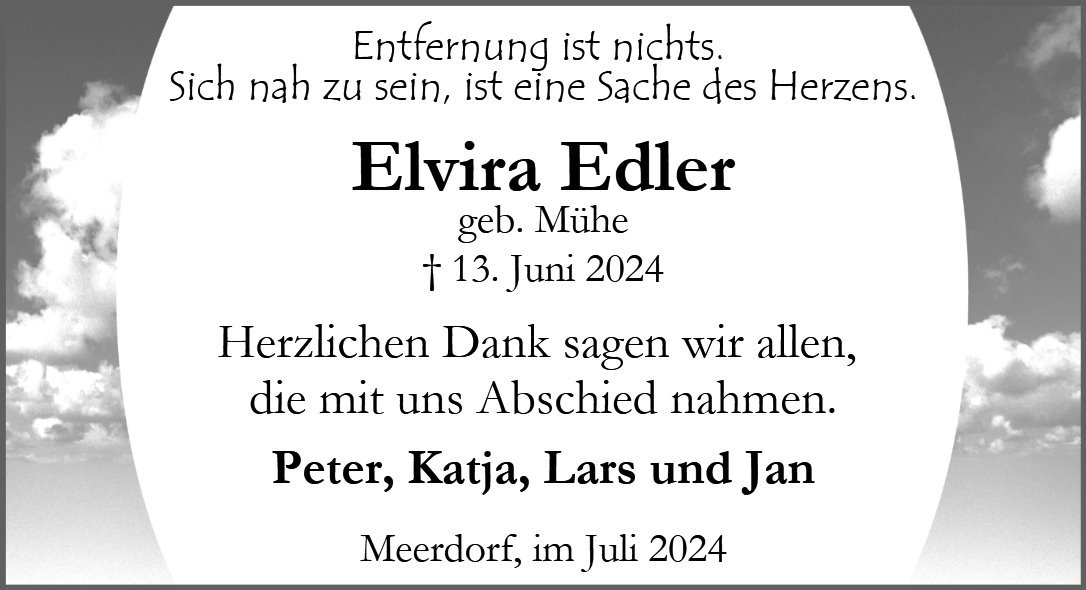 Elvira Edlergestorben am 13. Juni 2024