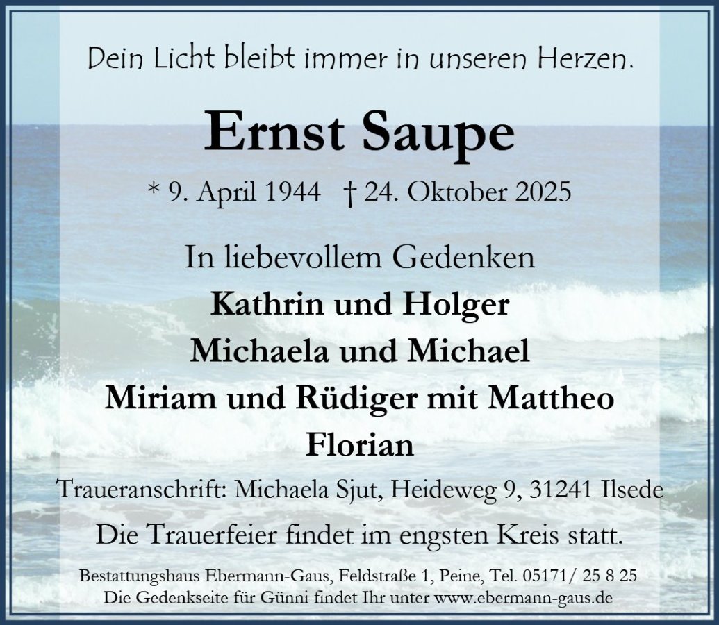 Ernst Saupegestorben am 24. Oktober 2025