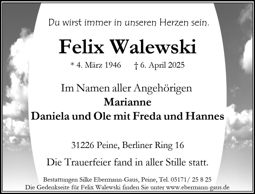 Ich wünsche Dir eine gute Reise Felix. Ich mochte Deine ruhige bescheidene Art. Sag meinem Vater einen lieben Gruß, solltet Ihr Euch treffen.