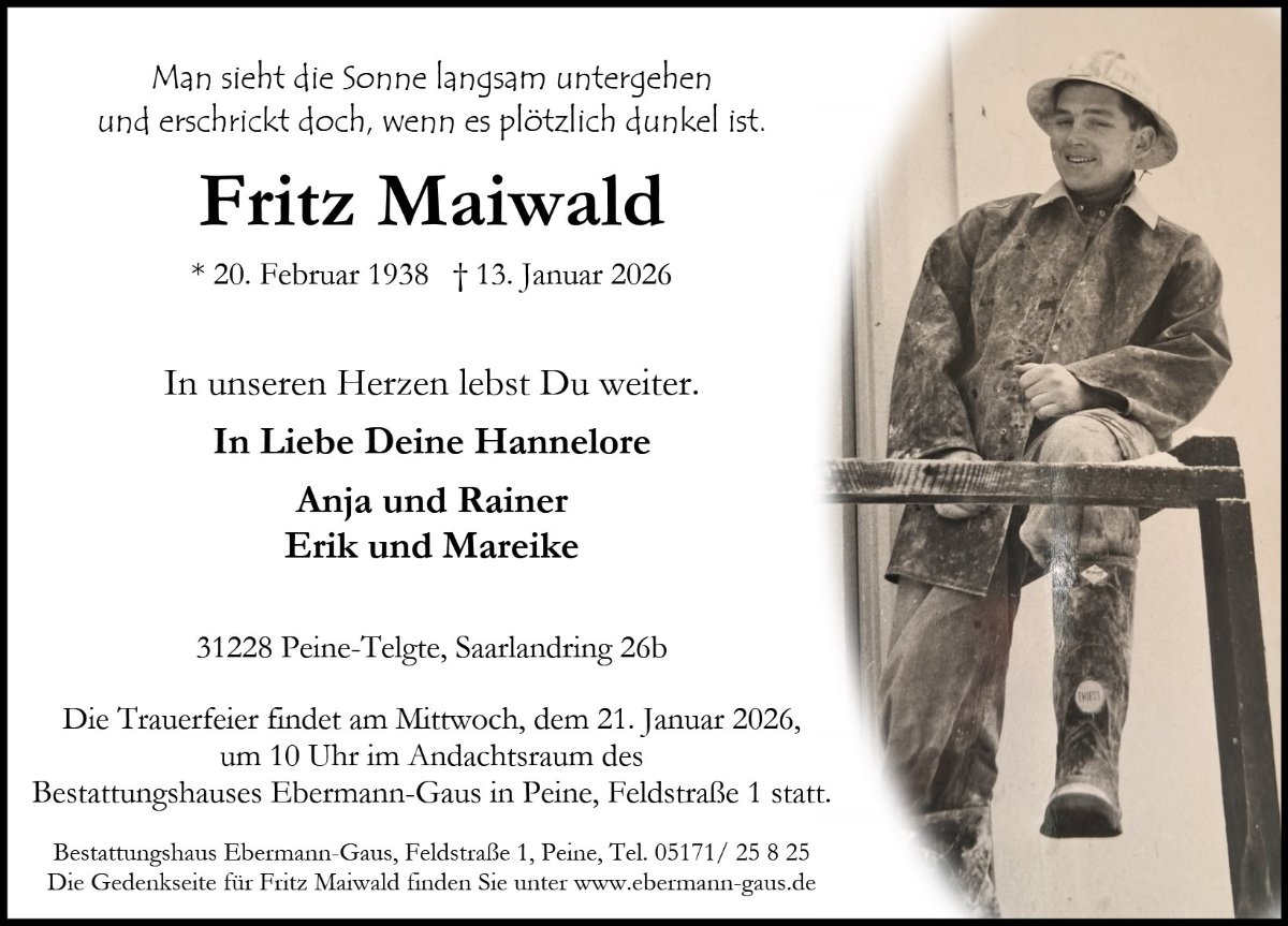 gestorben am 13. Januar 2026 in Peine