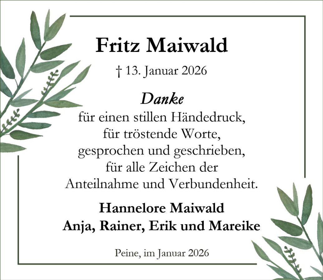 Fritz Maiwaldgestorben am 13. Januar 2026