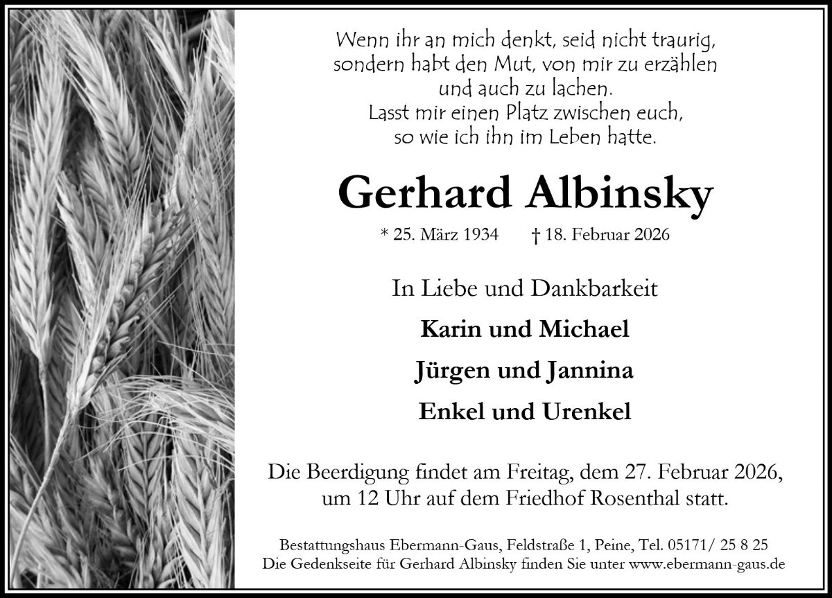 gestorben am 18. Februar 2026 in Peine