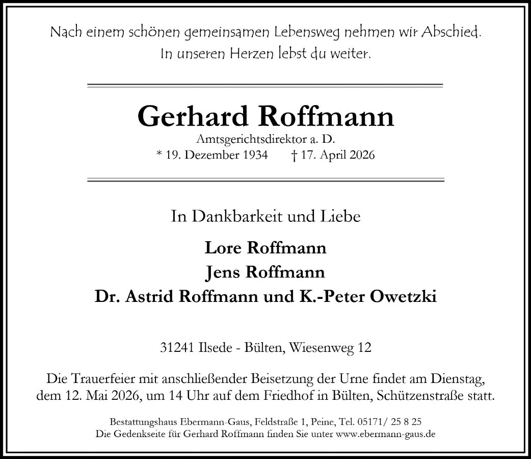 gestorben am 17. April 2026 in Ilsede-Klein Bülten