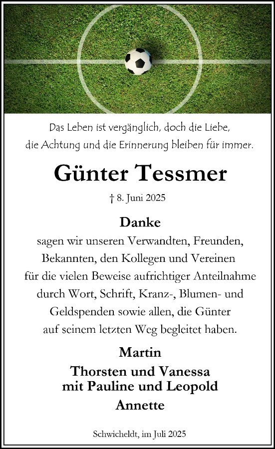 Wir wünschen der Familie viel Kraft in dieser schweren Zeit.