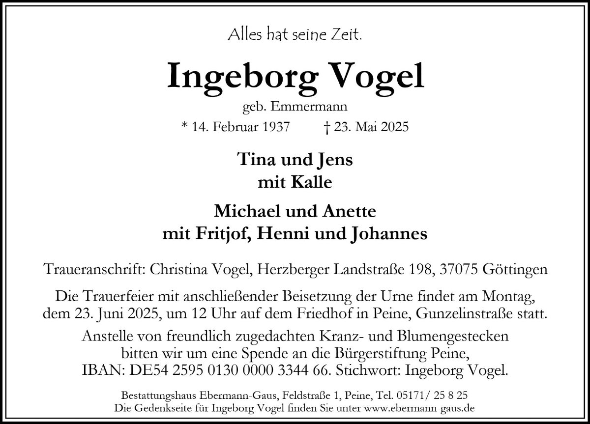 Ingeborg Vogel geb. Emmermann
