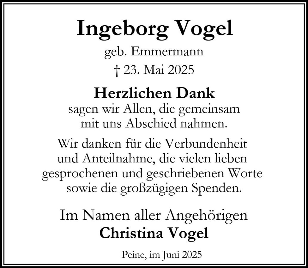 Ingeborg Vogelgestorben am 23. Mai 2025