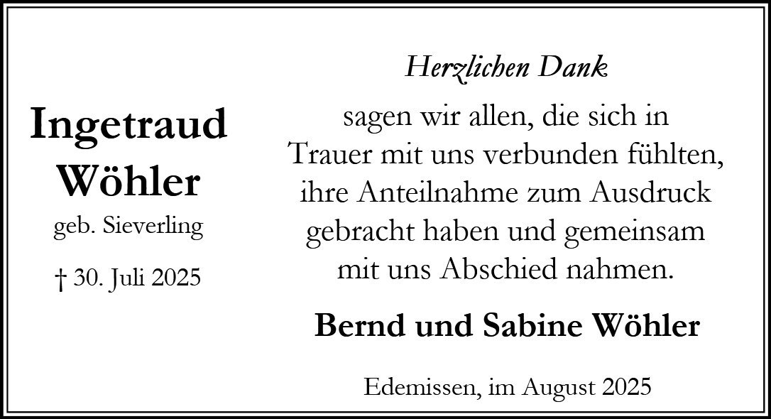 gestorben am 30. Juli 2025 in Peine-Vöhrum