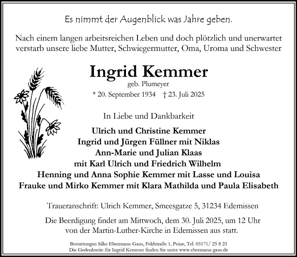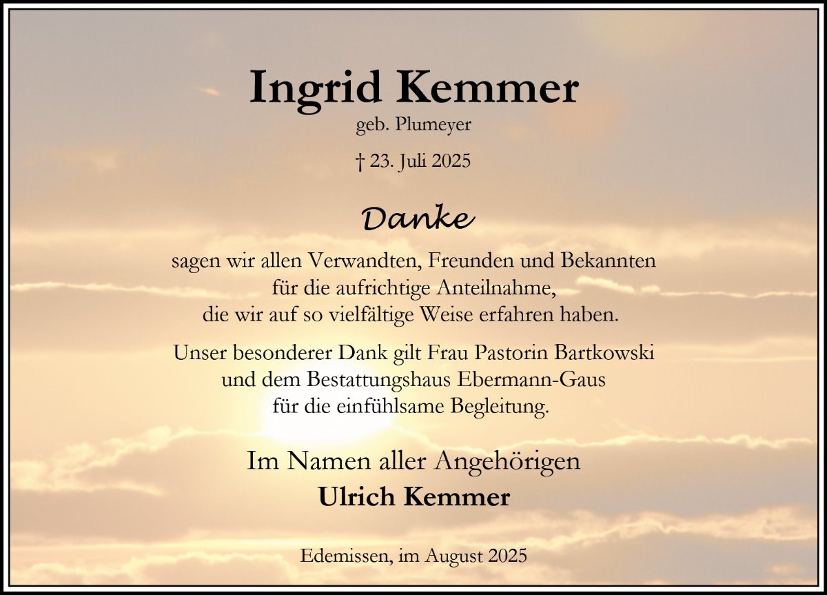 Ingrid Kemmer geb. Plumeyer