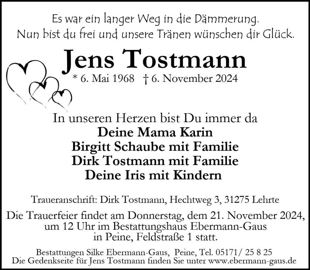 Jens Tostmanngestorben am 6. November 2024