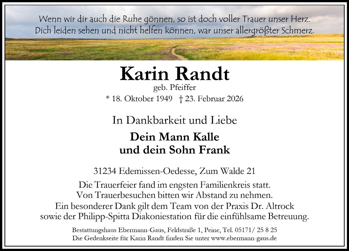 gestorben am 23. Februar 2026 in Edemissen-Oedesse