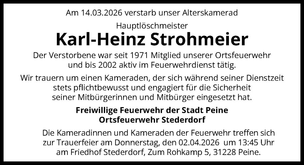 gestorben am 14. März 2026 in Peine