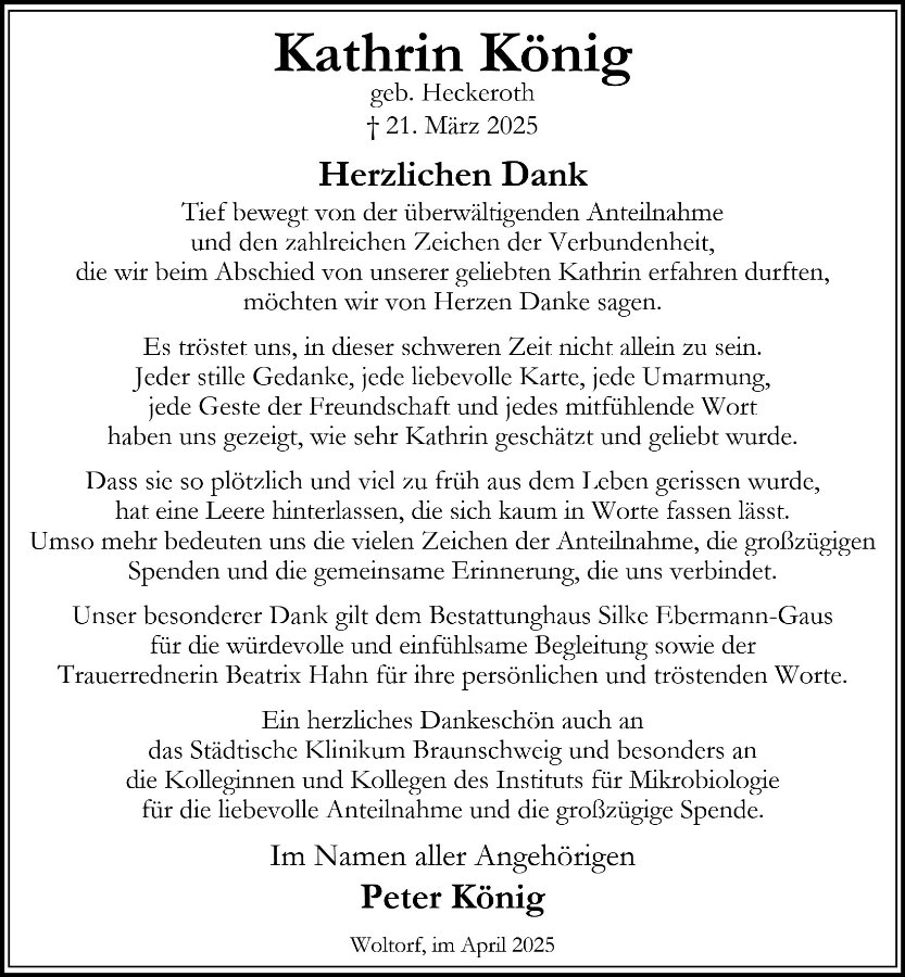 Ich kann es garnicht glauben, dass Kathrin so jung gehen mußte.