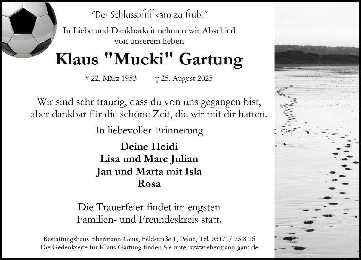 ja, der Schlusspfiff kam viel zu früh. Wir sind mit euch sehr traurig. Mucki war schon zu Grundschulzeiten die von allen bewunderte Sportskanone, der immer bei den Bundesjugendspielen eine Ehrenurkunde abräumte. Und dann kam Fußball, intensiv. Wer kann schon von sich sagen, mal gegen Uwe Seeler oder Wolfgang Overath gespielt zu haben?