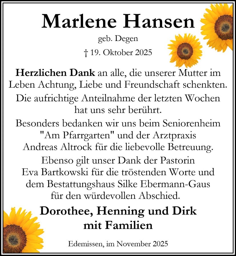 Marlene Hansen geb. Degen