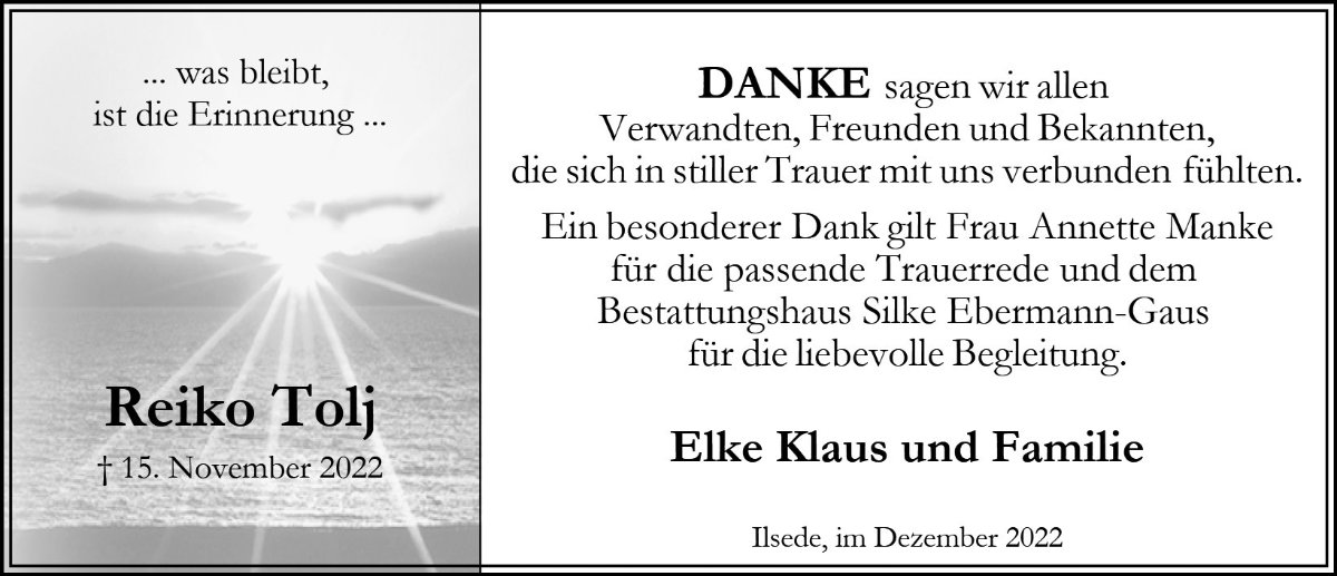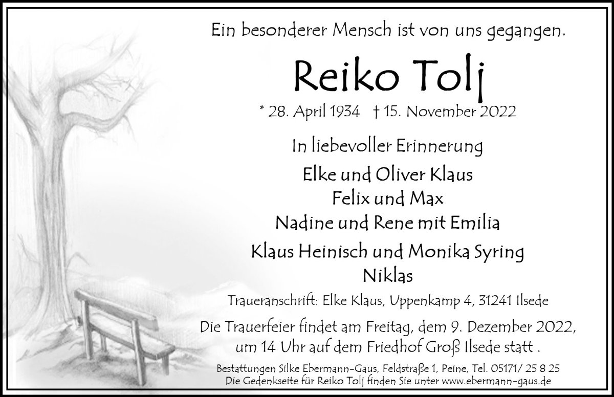 gestorben am 15. November 2022 in Ilsede-Gadenstedt