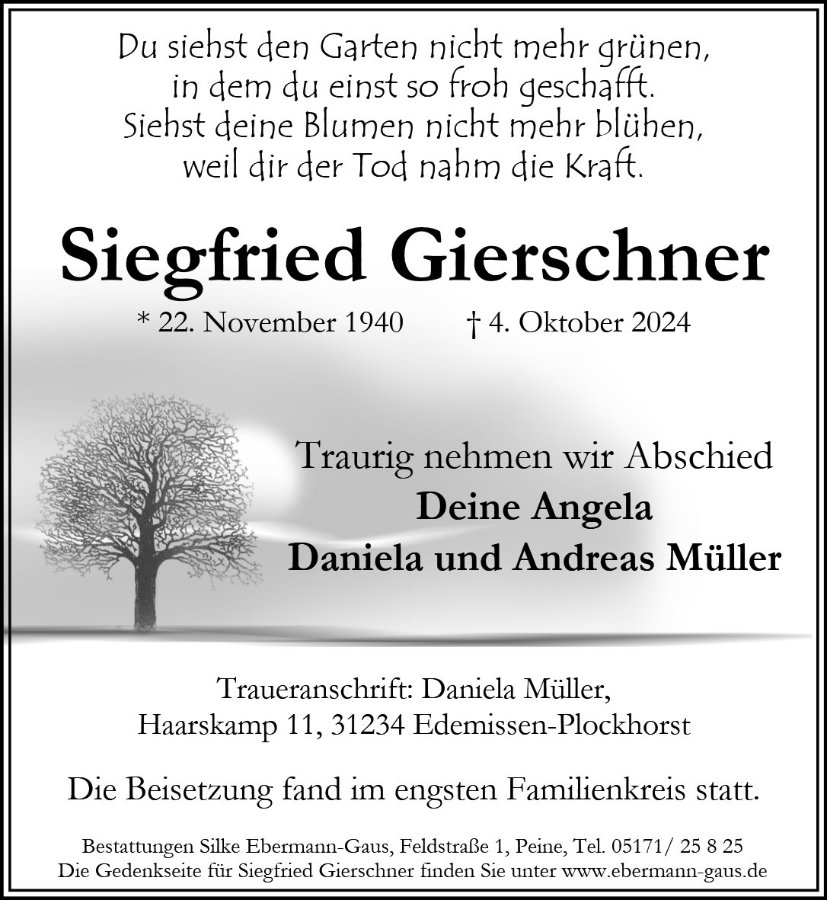 gestorben am 4. Oktober 2024 in Peine