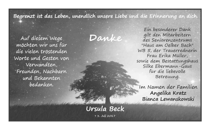 Ursula Beckgestorben am 3. Juli 2017