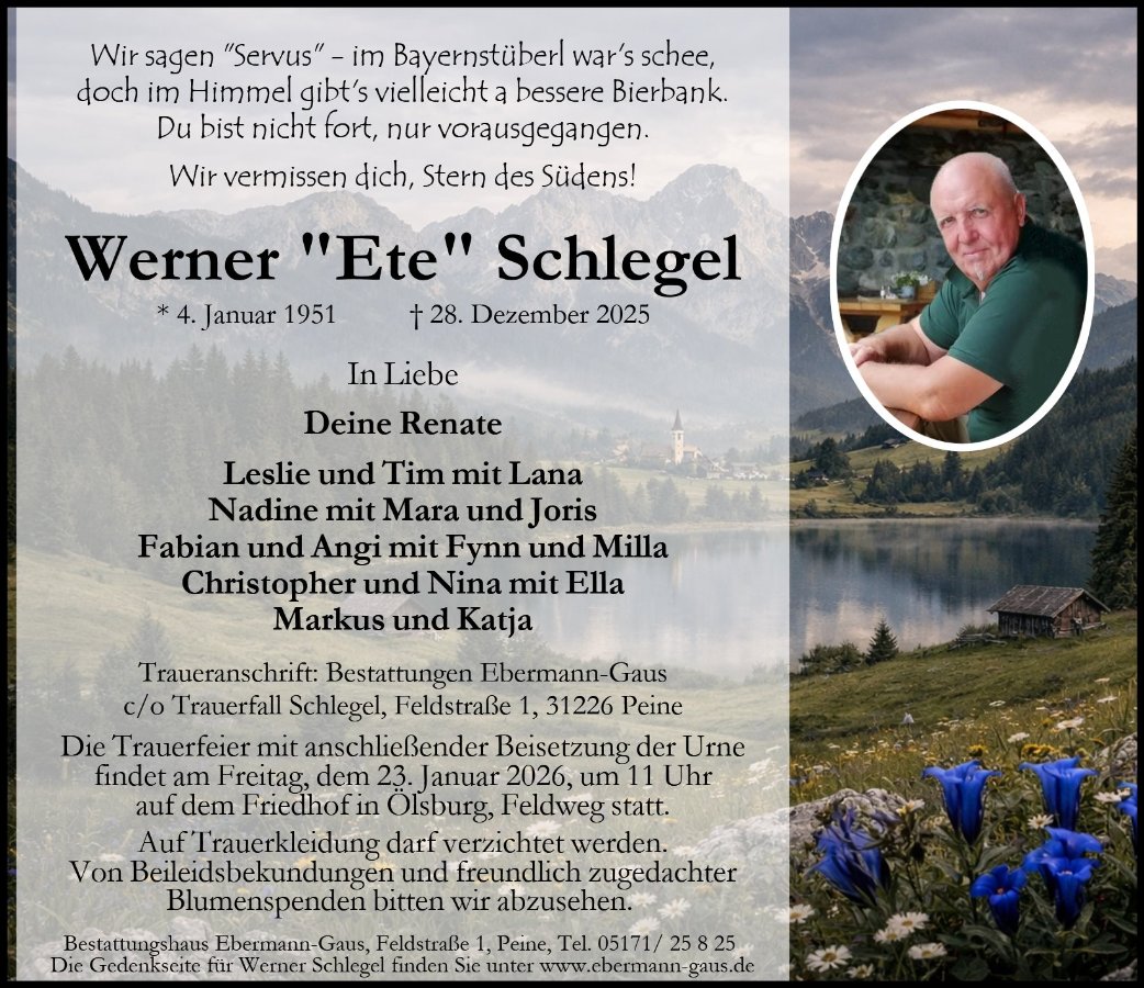 Werner war uns ein lieber ehemaliger Nachbar und Freund, zu dem nach all den Jahren nie die Verbindung abriss. Er bleibt in unseren Gedanken und im Herzen.