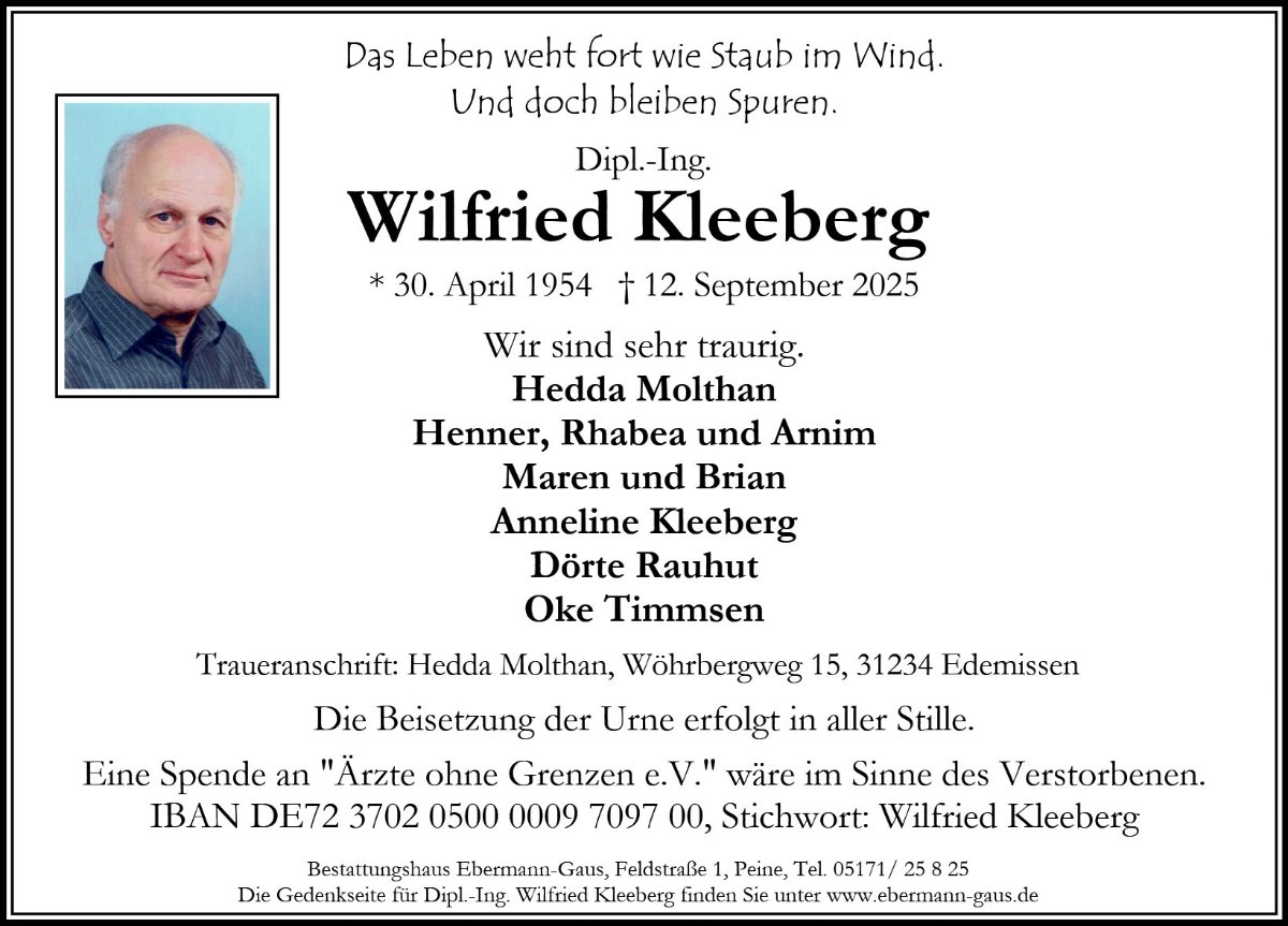 ich möchte dir und deiner Familie zum Tod von Wilfried meine aufrichtige Anteilnahme aussprechen.
