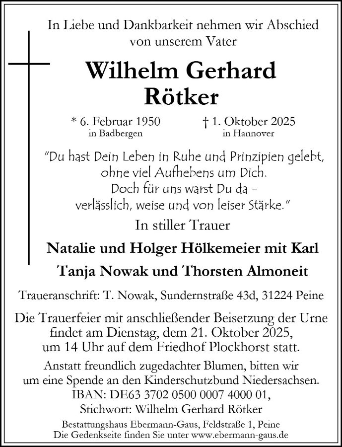 gestorben am 1. Oktober 2025 in Laatzen