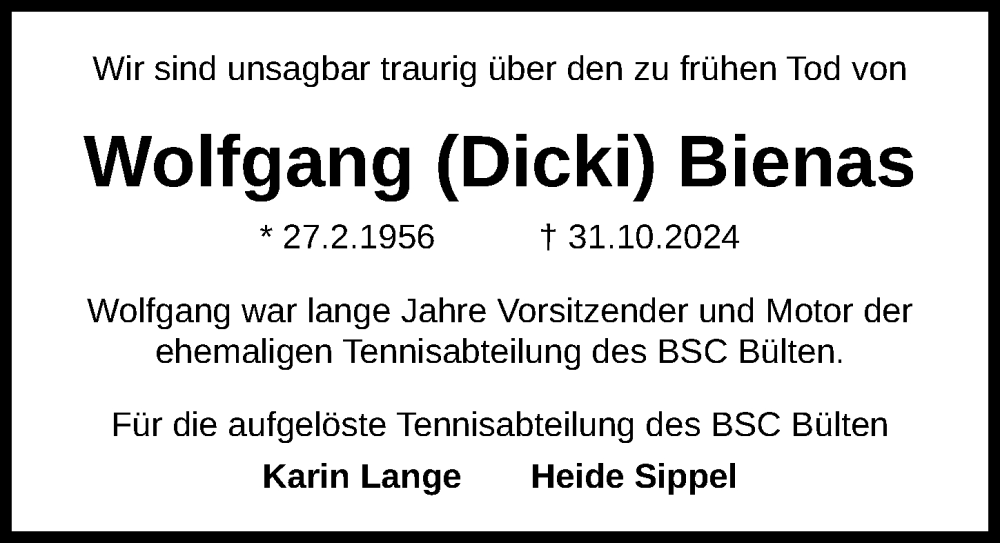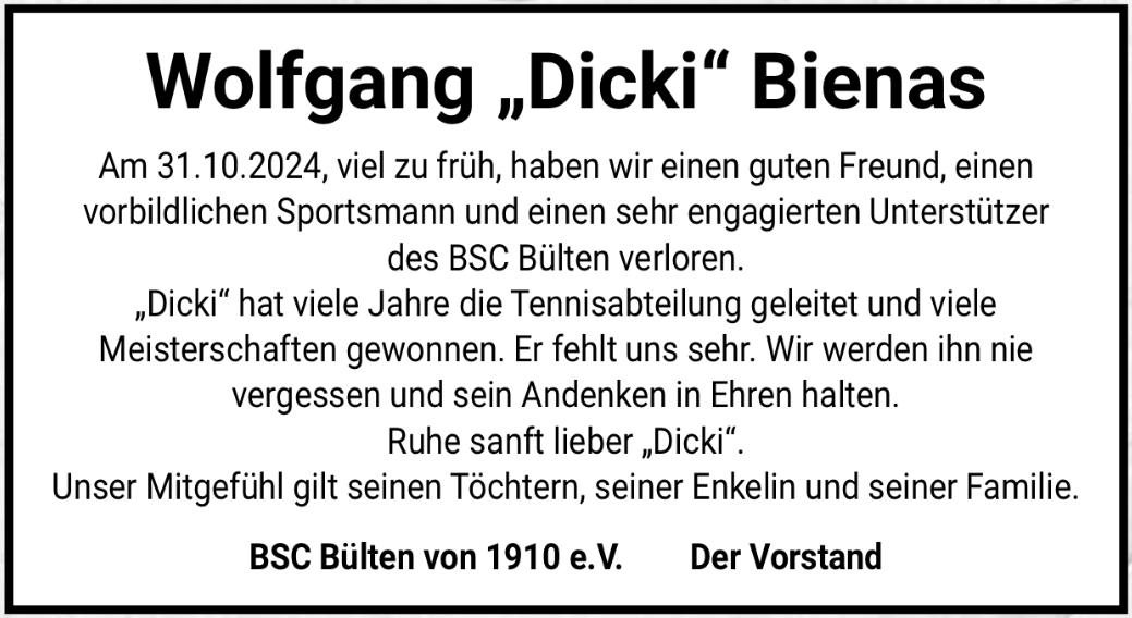 Wolfgang ( Dicki ) ist Heute beigesetzt worden.